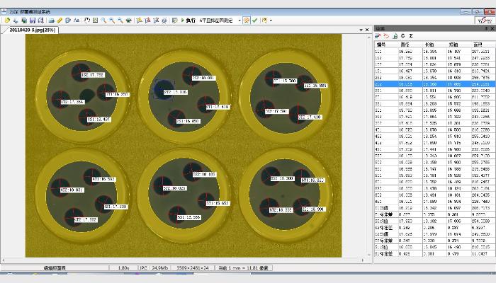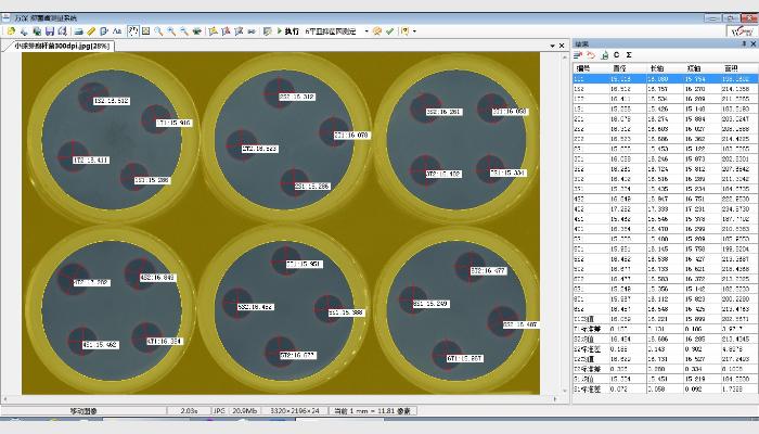 6、具有測(cè)量功能:全自動(dòng)尺寸標(biāo)定,也可人工標(biāo)定??墒髽?biāo)拖動(dòng)精確測(cè)量長(zhǎng)度、角度、弧度、面積、弧線、任意曲線。