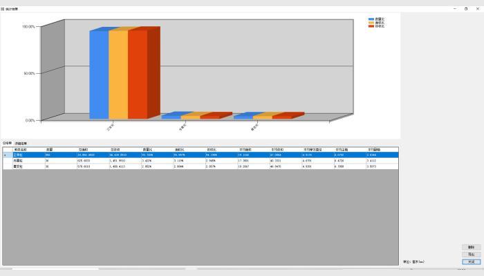 7、分析數據可自動形成總報表并輸出至Excel表。分析圖像結果可保存,包括按寬度、長度、面積等輸出的分析結果圖。