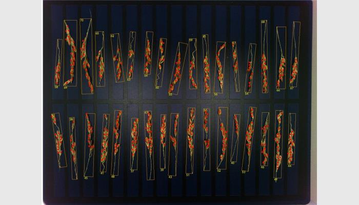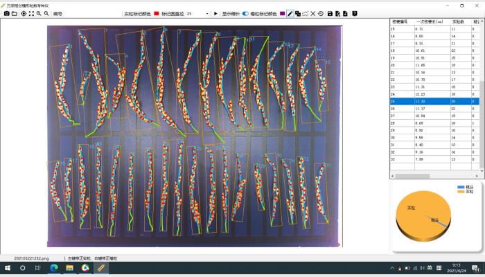 5、自動數(shù)粒誤差<±2.0%,極少量添加、刪除修正,可達(dá)100%正確。各級枝梗長的自動測量誤差<±1.5mm,可鼠標(biāo)編輯修正以接近100%正確。