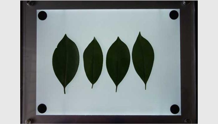 2、拍照與分析一鍵化操作,大批量全自動(dòng)分析多片葉的葉片面積、周長(zhǎng),最大葉長(zhǎng)、最大葉寬,矩形度,凹凸比,球狀性,形狀系數(shù),蟲(chóng)洞數(shù)量,蟲(chóng)洞面積、葉柄長(zhǎng)寬等參數(shù),并標(biāo)記葉片邊緣以便核對(duì)正確性。