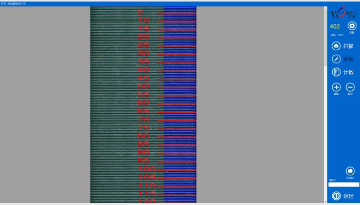 正對各類整齊堆疊的鋼板、鋁板、銅板等金屬板、塑料板、PCB線路板、硬紙板等,點【掃描】成像;再點【計數(shù)】獲得自動數(shù)板結(jié)果,觸屏可快速核實100%數(shù)板正確;若出現(xiàn)極個別的誤判,可點【+】/【-】按鈕來快速修正,確保數(shù)板結(jié)果100%正確。